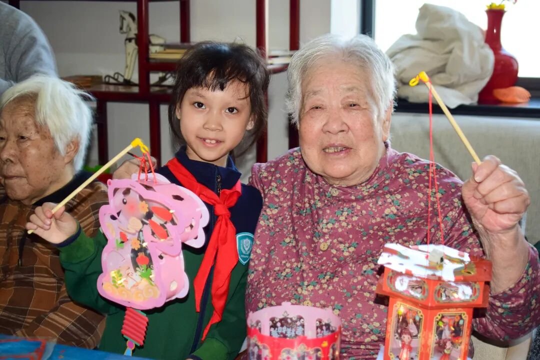 为了让老人们感受浓浓的节日氛围,孩子们与爷爷奶奶围坐在一起,共同动手制作元宵节花灯。在工作人员的指导下,孩子们和老人默契配合,折叠、拼接……指尖翻飞间,一盏盏造型可爱、寓意美好的花灯便制作完成。